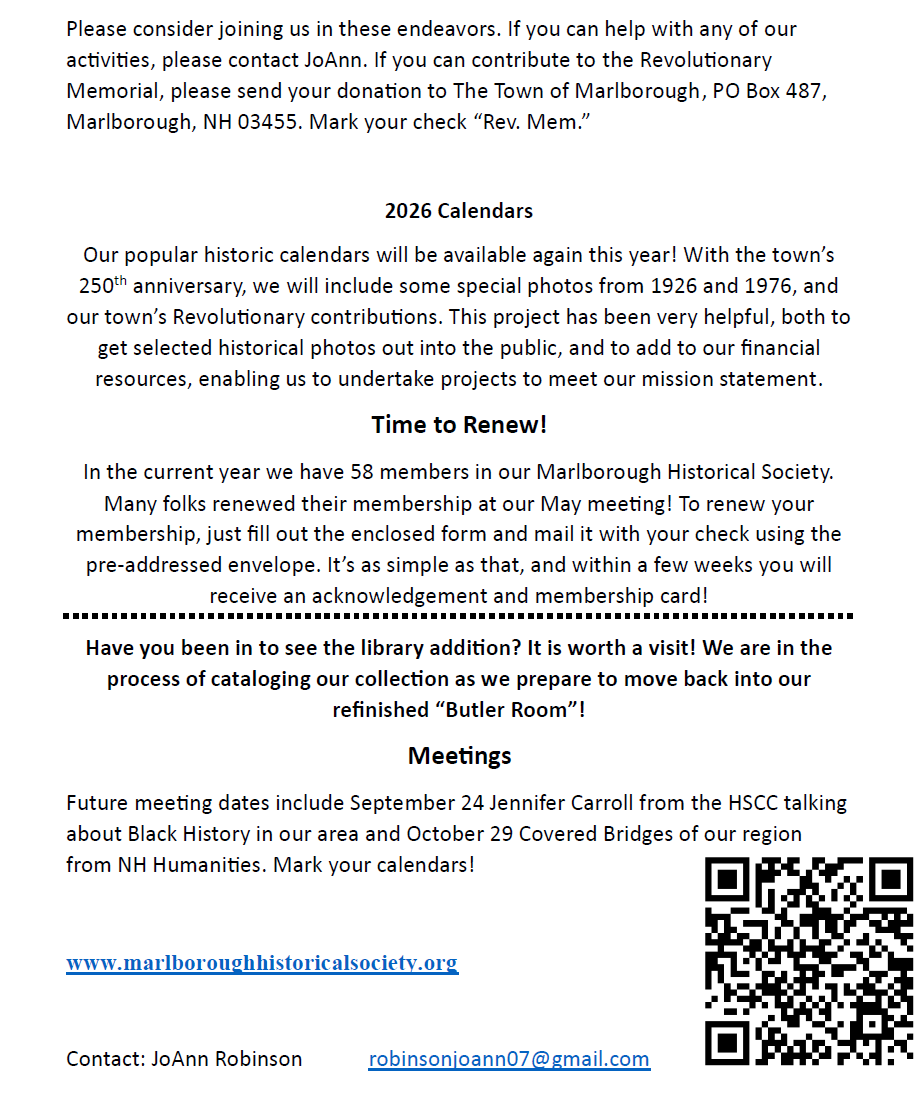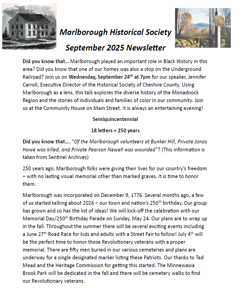 Historical Society P. O. Box 202, Marlborough, NH 03455 |